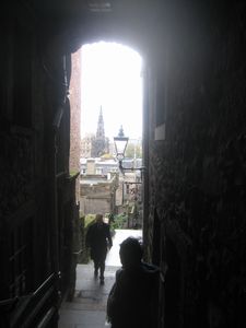 ロイヤルマイルの横道も風情がある、古い町並みになっています。 |