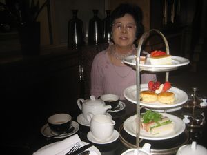 | 初めてのロンドン、空港から緊張して来ましたので、どっと疲れが出ました。気付けばお腹もペコペコ。 早速、ホテルのカフェバーでアフタヌーンティーとなりました。 ミニサンドイッチにスコーン、タルト、などなど、紅茶の香りと安堵感で幸せ~~ |