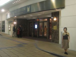 10月12日 朝、ホテルの周りを散歩です。ホテルの車寄せです。通りはまだ人通りも少なくとても静かです。 |