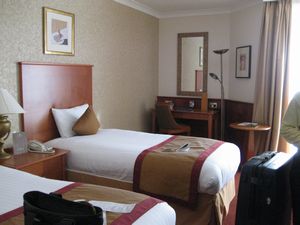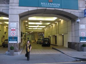 ヒースロー空港から地下鉄に乗って、ホテルのあるグロースター・ロード駅へ、地上に出て道路横断するとグロスターホテルでした。 |