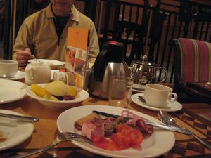 ホテル周りの散歩の後、朝食を食べました。紅茶がおいしいです。 |