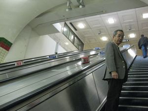 | 地下鉄チューブに乗って、観光に出かけます。長い長いエレベーターです。 | ![]() |