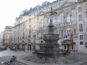 朝のピカデリーサーカスです。人が全くと言っていいほどに居ません。昨日の大勢の人はどこへ行ってしまったんでしょうか?まだ眠っているんでしょう、8時半頃です。 |