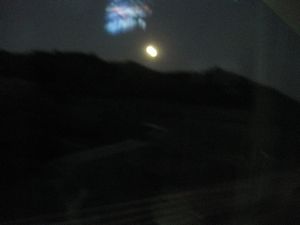 飛行機の中から見たお月さんと同じような真ん丸いお月さんが出ていました。 夜になって我が家に帰り着きました。 |