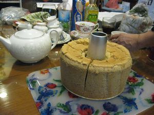 26日のティーパーティでお客様にお出しするシフォンケーキの試食会をしました。久しぶりに焼いたMiss Paddington さんも仕上がりが気になります。 |
