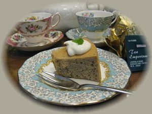 砂糖を入れずにふんわりと泡立てた生クリームをのせ、フレッシュミントを飾ります。 フォークを入れると、シュワッと音がして紅茶の香りが沸き立ちます。しっとりおいしいケーキです。 素敵な試食会に参加できてスタッフのたかちゃんと一緒に喜びました。 |