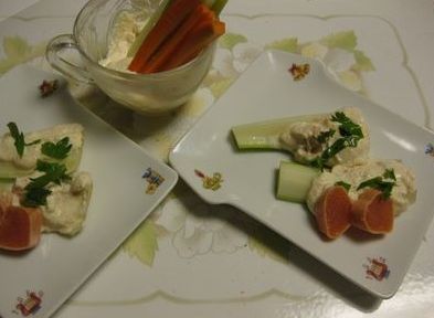 スモーク明太子、小ネギ、クリームチーズでディップを作り、セロリで食べる、などなど