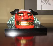 | 会場はの井別荘蛍火園です。 ロビーを入ると、獅子頭のお出迎えです。 |