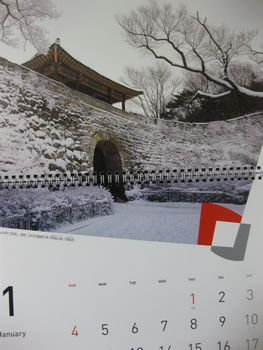 | 帰る時には、カレンダーを頂きました。 1626年に完成した京畿道の南漢山城の写真の1月カレンダー |
