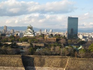 |  | 大阪に着きました。 ホテルの10階のお部屋の窓からは、正面に大阪城が見えました。 |