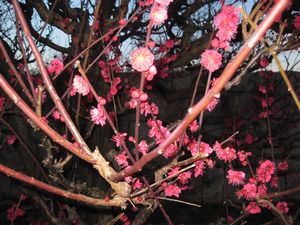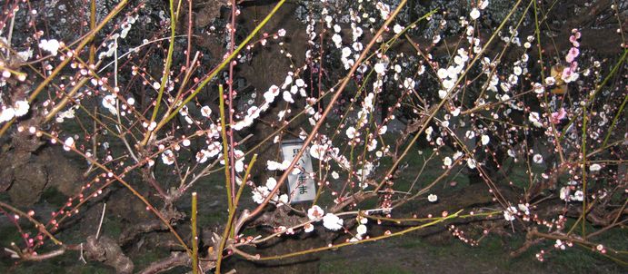 |  | 薄暗くなりかけた梅園は、梅の花が浮き出てなおきれいです。 |
