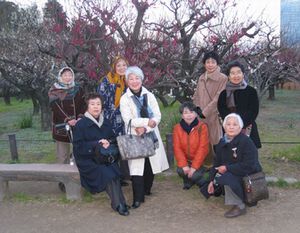 |  夕食までの時間を梅林見学です。ジョギングや散歩の人も多く見られます。 | |