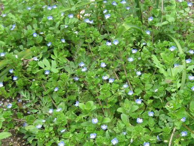 |  畑を覆ういぬふぐり 可愛くて、抜くことが出来ません。 |