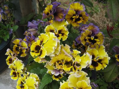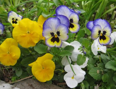 |  三色すみれその名の通り黄色・紫・ブルーのすみれ 大好きな黄色のパンジーと、清楚な真っ白のパンジー |