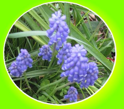 |  小さな球根でドンドン庭中に増えます。 どこにお花が出てくるか、とっても楽しみ。 ムスカリです。 |