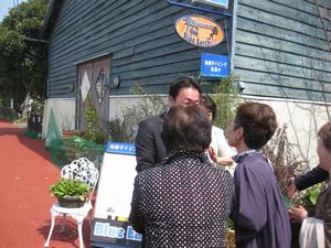 |  | それでは明日はよろしく!と散会。 外へ出ると、ハンギングフラワーがとてもきれいでした。春の「かんたん港園」素敵です。 |