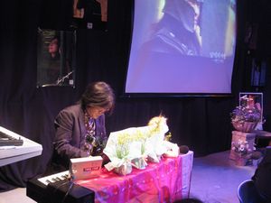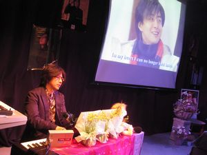 |  | 早速、深田ミニョン宏一さんのピアノライブが始まりました。チュンサンの映像にのせて「冬ソナメドレー」にうっとりしました。 |