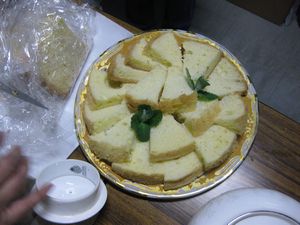 | 差し入れのシフォンケーキがテーブルに運ばれました。今日の紅茶の二つ目はスリランカの古都kandyの甘くてマイルドな無農薬紅茶。 |  |