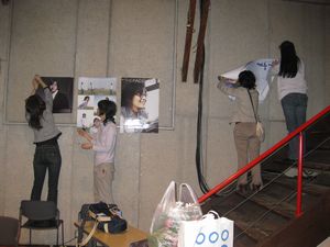 |  | スタッフ集合9時。福岡からHitomiちゃんshokoちゃんが7時に出発した~~と早々と到着。とってもたのもしくうれしかったです。 「大分からぺ・ヨンジュン様を熱く想う会」から差し上げる花束や、スタッフカードなどたくさん作って駆けつけてくれました。 |