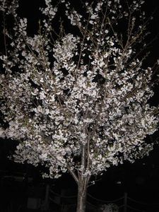 | 大分の桜は既に葉桜になっているのに、ここに1本夜目にも美しい桜の木がありました。まるで明日の大村さんを待ってくれていたみたいでびっくりです。 |  |