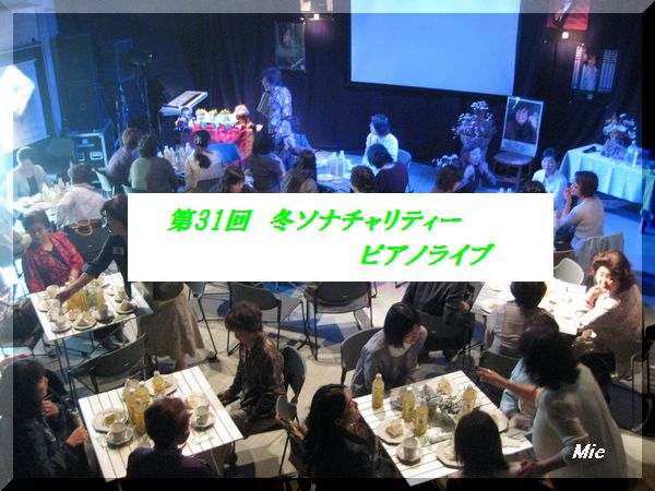 |  | 引き続いて3時から「第31回冬ソナチャリティーピアノライブ」の開演です。 これからはPaddington Tea Roomのおいしい紅茶も楽しんで頂けます。先ず最初の紅茶は英国の由美子さんのLong Walkのダージリン・スペシャルブレンドです、「ガナット」のフィンガーサンドイッチと共に召し上がっていただきました。 |