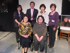 |  記念写真も写して頂きました。 左から、東京から駆けつけてくださったkeikoさん、スタッフのクロちゃん、Mie,右側にはtakaちゃん、ピアニストの深田ミニョン宏一さん、そして、Miss Paddingtonさんです。 | |