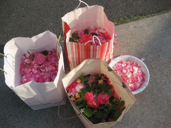 | 大きな紙袋に一杯花びらを摘むことが出来ました。 さあ、この後、どう、乾燥させたら良いのか、頭絞る所です。 |  |
