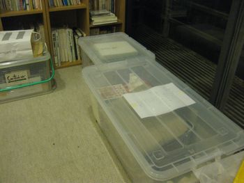 | 音楽祭期間中のグッズがセクション毎に整理されています。その中を点検して、不要のもの、足りないものをリストアップしました。 |  | |