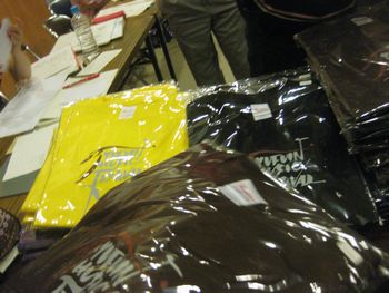 | 私たちはお揃いで黄色のTシャツを選びました。背中には出演の演奏家の名前が書いてあります。 |  | |