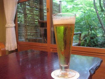 温泉を出た所で、中谷氏とバッタリ。ロビーでおしゃべり。飲みましょうと2人で乾杯です。車の運転のある夫は麦茶、ラトビア旅行の思い出話や、お孫さんのお話など、思わぬ楽しい時間を頂きました。ありがとうございます。 |