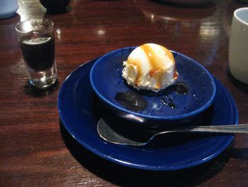 | デザートをプレゼントして下さいました。小さなショットグラスは、水出しコーヒーです。7~8時間かけて抽出したたコーヒーは、とても風味豊かな味わいでした。 | ![]() |