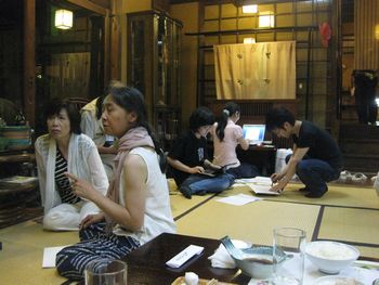 | 今年第35回になるゆふいん音楽祭に出場してくださる演奏家の皆さんが集まっておられました。何度目かの音楽祭出演で再会がうれしい演奏家の方々、また今回初参加で、はじめましてとご挨拶をした演奏家の皆さん、明日からの演奏がとても楽しみです。よろしくお願いします。あちこちで旧交を温める人たち、また、演奏家と打ち合わせなど、遅くまで話は尽きませんでした。 | |