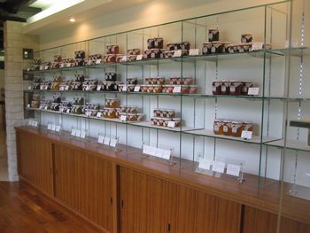 清潔感溢れた場所にしたかったとのこと、ジャム工房が広くなり、たくさんのジャムの並んだ棚も出来ました。 |