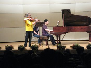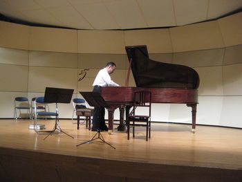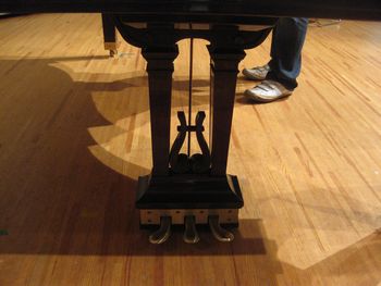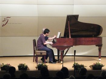 | 調律の終わったステージでは早速、リハーサルが始まりました。 | ![]() |
