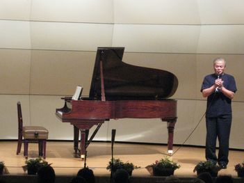 いよいよ総合アドバイザーの小林道夫さんの司会で、第35回ゆふいん音楽祭が始まりました。 |