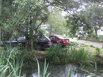 |  | 夜中に雨がよく降って、緑がなおなお美しい朝です。家の前の池から、カエルが出てきました。 |
