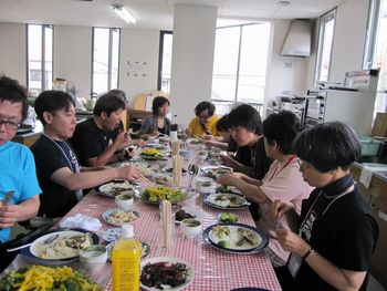 | 結局は写真を見ながら皆さんと一緒におしゃべりで楽しく過ごしてしまいました。お昼ごはんです!毎年、楽しみなグリーンカレーです。とってもおいしいです。 |  |