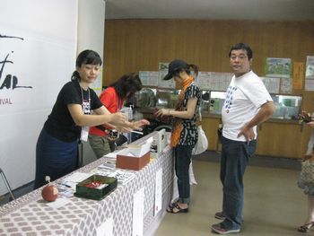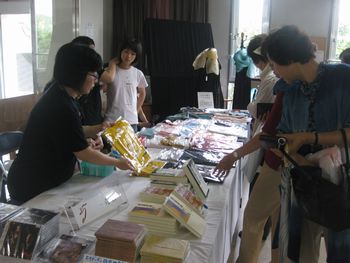 | そして、売店で、記念Tシャツを見たり、演奏家のCDや、本をご覧になって買ってくださいます。 |  |