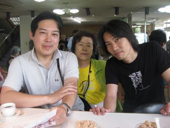 |  | 「永野さん!」と呼ばれました。びっくり!山口君です。北九州市へ引っ越した山口ハッピー君です。数年間、一緒にスタッフとして、また、中世音楽のテノールとして活躍してくれました。 恵太さんと一緒にパチリ。 |