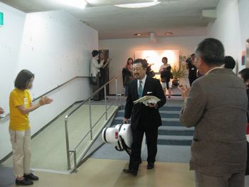 | 会場を出てこられた河野文昭さんに大きな拍手が起こりました。 |  |