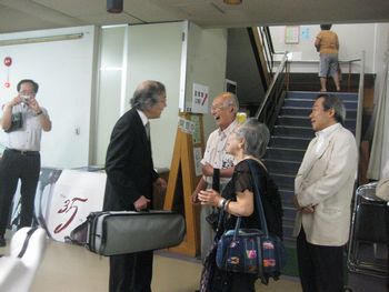 |  | 演奏を聴いて出てこられた、音楽祭代表の溝口薫平さんと、中谷健太郎さんです。お二人の笑顔が素晴らしいです。 |
