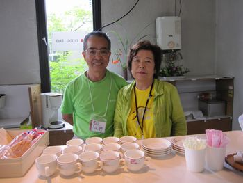 | ここの喫茶のお仕事も、これでおしまいになりそうです。最後に夫とパチリ。 |  |