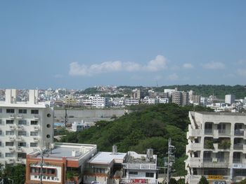|  | ここは首里城の近くの高台です。ホテルの部屋の窓からは、沖縄の青い空、白い建物、はるかむこうには、海がかすかに望めます。 |