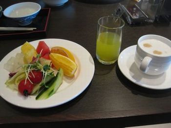|  | 10日 昨日は、珍しい琉球料理を食べ過ぎてしまいました。お野菜やフルーツ中心の朝ごはんにしました。 シークァーサー入りのオレンジジュースが珍しいです。 |