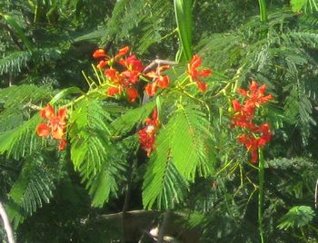 |  | 朝食レストランの窓の外には、珍しい熱帯の花が美しい!鳳凰木(ホウオウボク)いかにも優雅な花です。 |