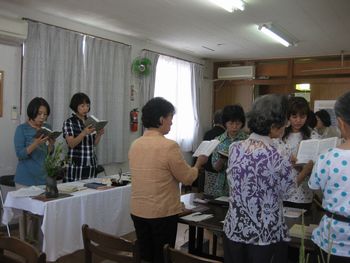 |  | 9時半にホテルを出て、セブンスデーアドベンチスト首里教会へ行きました。 多くの沖縄友の会員が集まられて、11時から沖縄友の会創立35周年記念例会が始まりました。 |