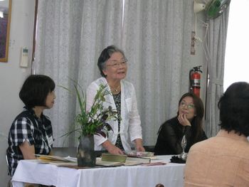 |  | 婦人之友の愛読者が昭和49年沖縄友の会を発足させました。その中心になられた城間みどりさん(85才)もとてもお元気で、当時のお話をして下さいました。 他に、当時からの会員さんが次々とお話をして下さる。 |