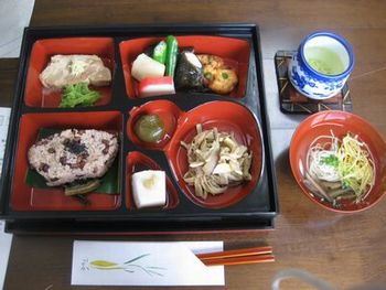 |  | 友の会の方が開いておられる琉球料理のお店「ざきみ」へ案内して頂きました。 今回は、昨年と違って、お惣菜料理にしてみました。とのことですが、夏の食材を上手に生かしてとってもおいしいお料理です。 |