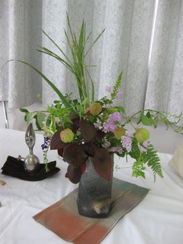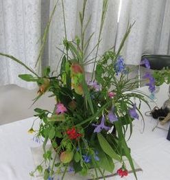| 今日のテーブルを飾ったお花です。どれも野の花と伺い、暑い沖縄の野に咲く、爽やかなお花に見とれました。 | |
