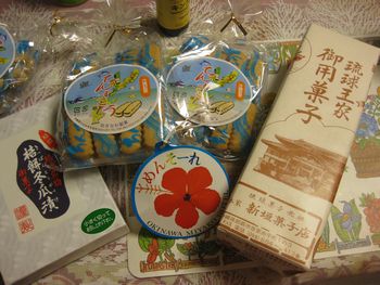 |  | 慌しい一泊二日の沖縄でしたが、友の会の創立を祝し、大勢の会員の皆さんとお話が出来たことはとてもうれしいことでした。 おみやげはちんすこう(塩味と、伝統味)そして、伝統菓の冬瓜とミカンの砂糖漬、夫々においしく頂きました。 |